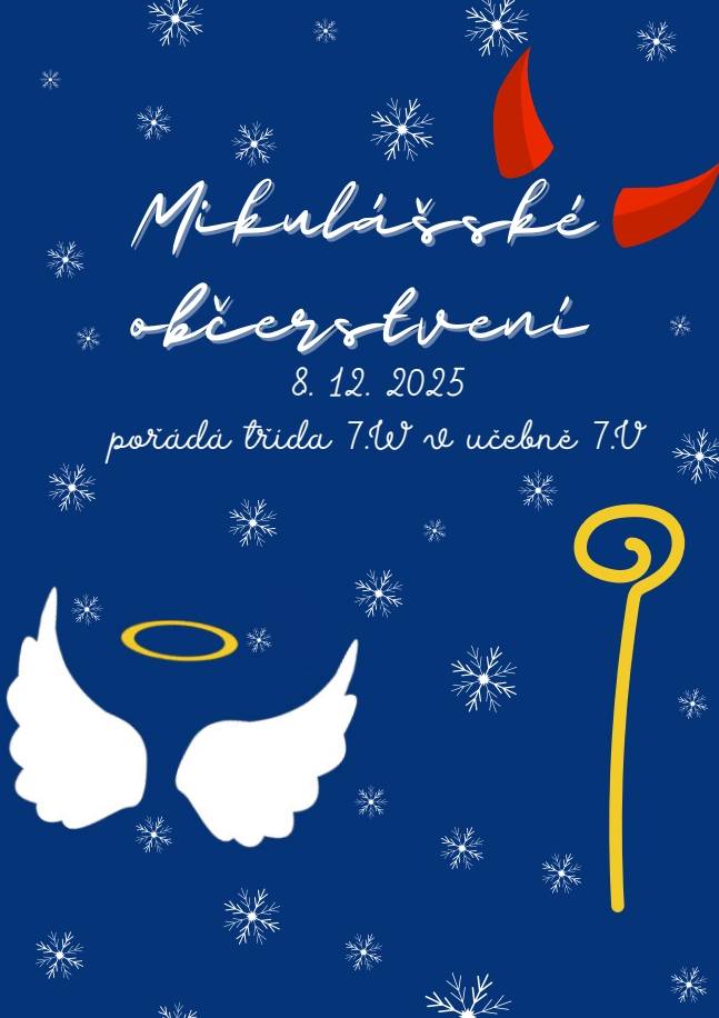 Srdečně Vás zveme na Mikulášské občerstvení, které pořádá třída 7.W! Přijďte si užít příjemné chvíle plné chutí a dobré nálady.