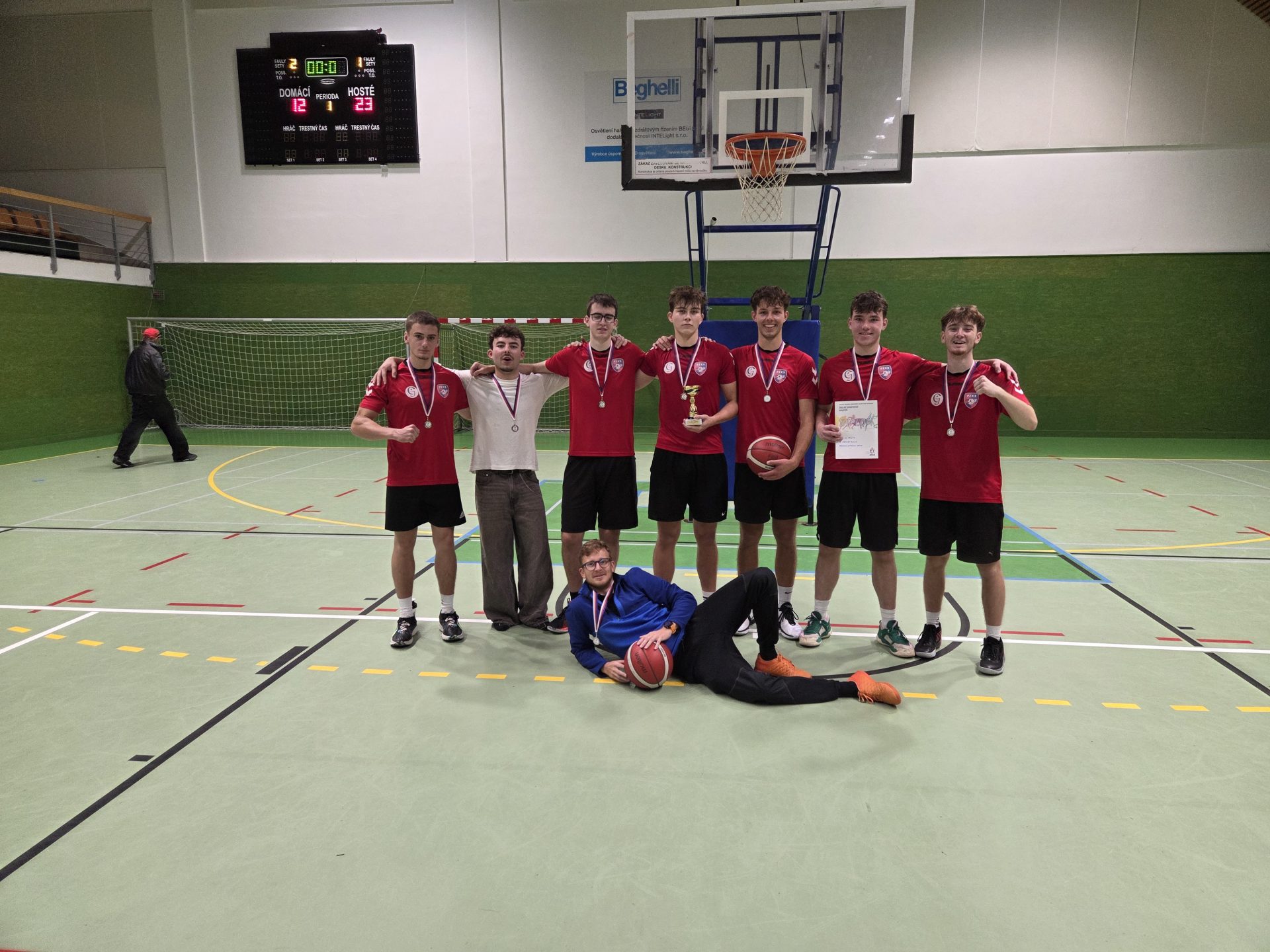 Náchodští gymnazisté vybojovali na basketbalovém turnaji pro žáky středních škol v Jaroměři druhé místo. Studentský výběr se utkal v turnaji hraném systémem „každý s každým“ se školami: Gymnázium Jaroslava Žáka Jaroměř, Střední průmyslová škola Nové Město nad Metují, Střední odborná škola Otty Wichterleho Velké Poříčí a Střední průmyslová škola stavební Náchod. Naši studenti svým výkonem nestačili pouze na Střední průmyslovou školu stavební Náchod 14:23. Ostatní výsledky: Jaroměř x JGN ( 3:13), JGN x Nové Město ( 16:9), JGN x Velké Poříčí (25:18). Pro většinu studentů se jednalo o poslední turnaj v dresu školní reprezentace v basketbalu, proto jim i nadále přejeme mnoho dalších vstřelených košů i po konci jejich zdárné školní reprezentační kariéry na naší škole.