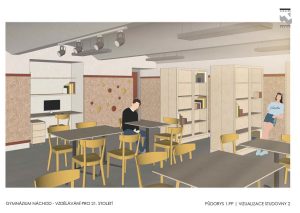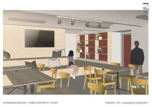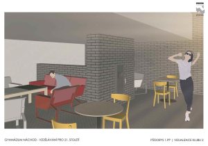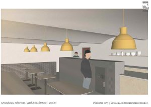 • studentský klub (navazuje na kantýnu, bude sloužit k výuce menších skupin, k práci na projektech, ke vzájemnému potkávání se…),