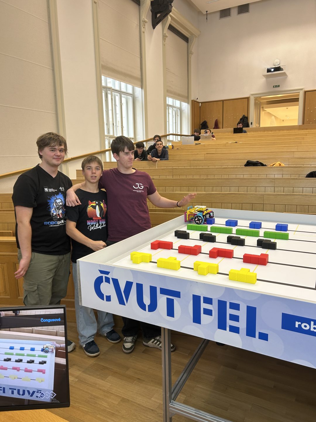 Letošní účast naší školy v Robosoutěži pro SŠ 2025 pořádané FEL ČVUT v Praze se opravdu vydařila. Reprezentovaly nás 4 týmy: Rykard (Jáchym Bohadlo 7.V a Štěpán Strnad 7.V), Čongusové (Ondřej Macháček 7.V, Matěj Kolaja 7.V a Václav Hanuš 1.B), Kosiska (Jan Tomáš 7.V a Václav Holý 7.V) a tým Řádil 3000 (nebo radim3000) (Maxmilián Hejna 3.W, Marek Špelda 4.V a Radim Šrůtek 4.W).