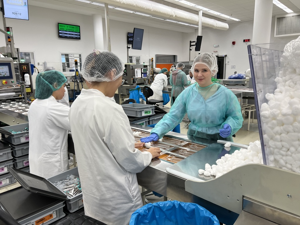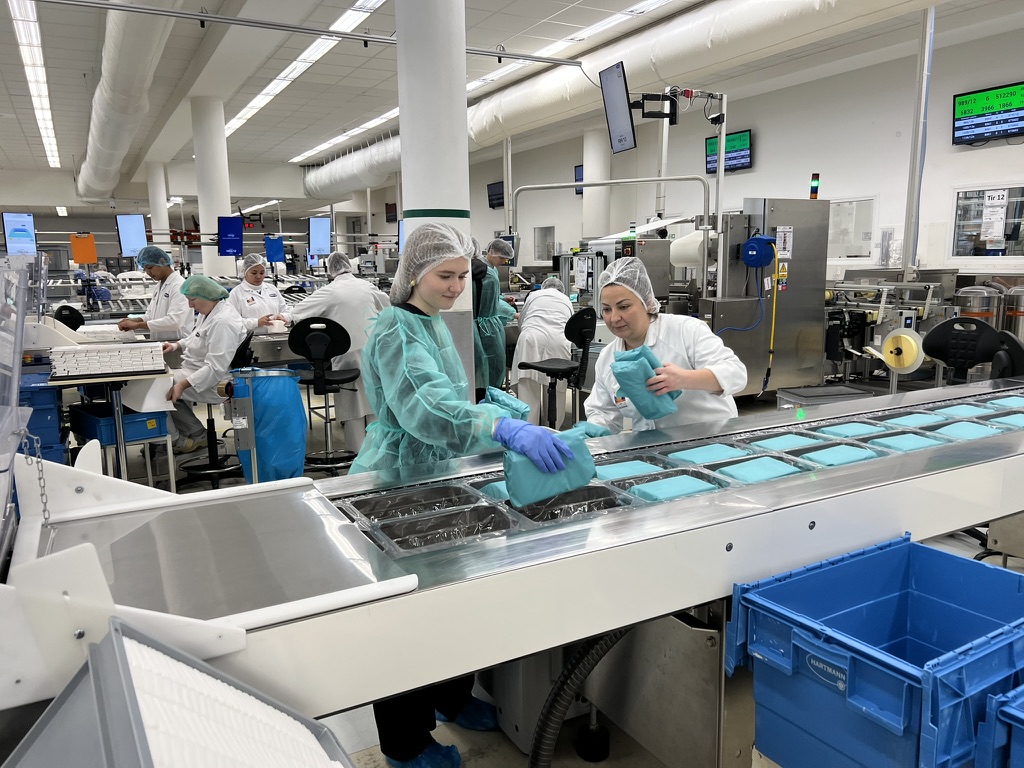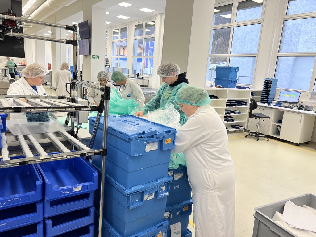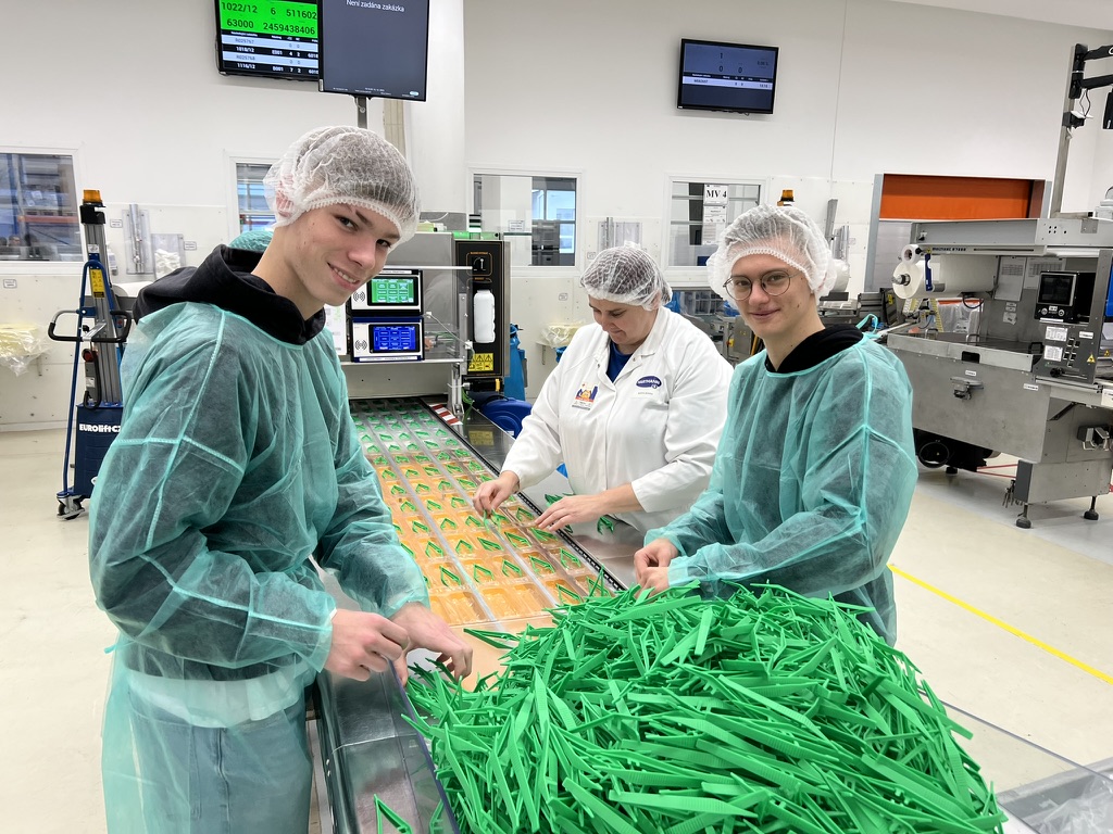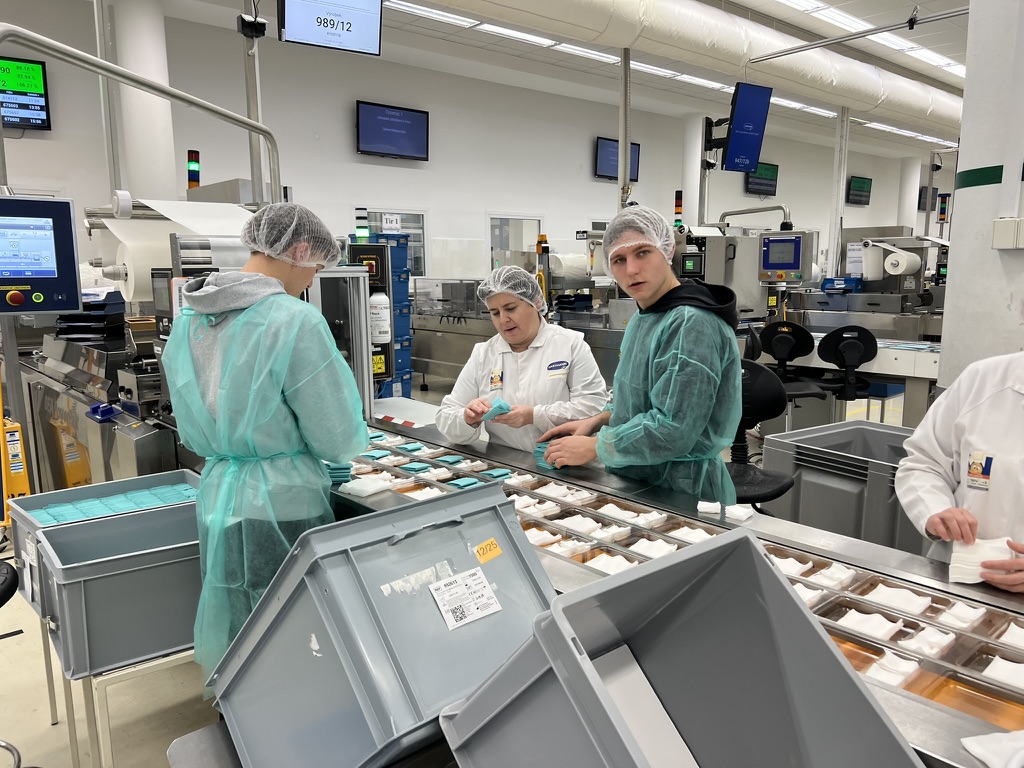 • Prohlídka výroby i praktické vyzkoušení si práce na lince ve zdravotnickém provozu.