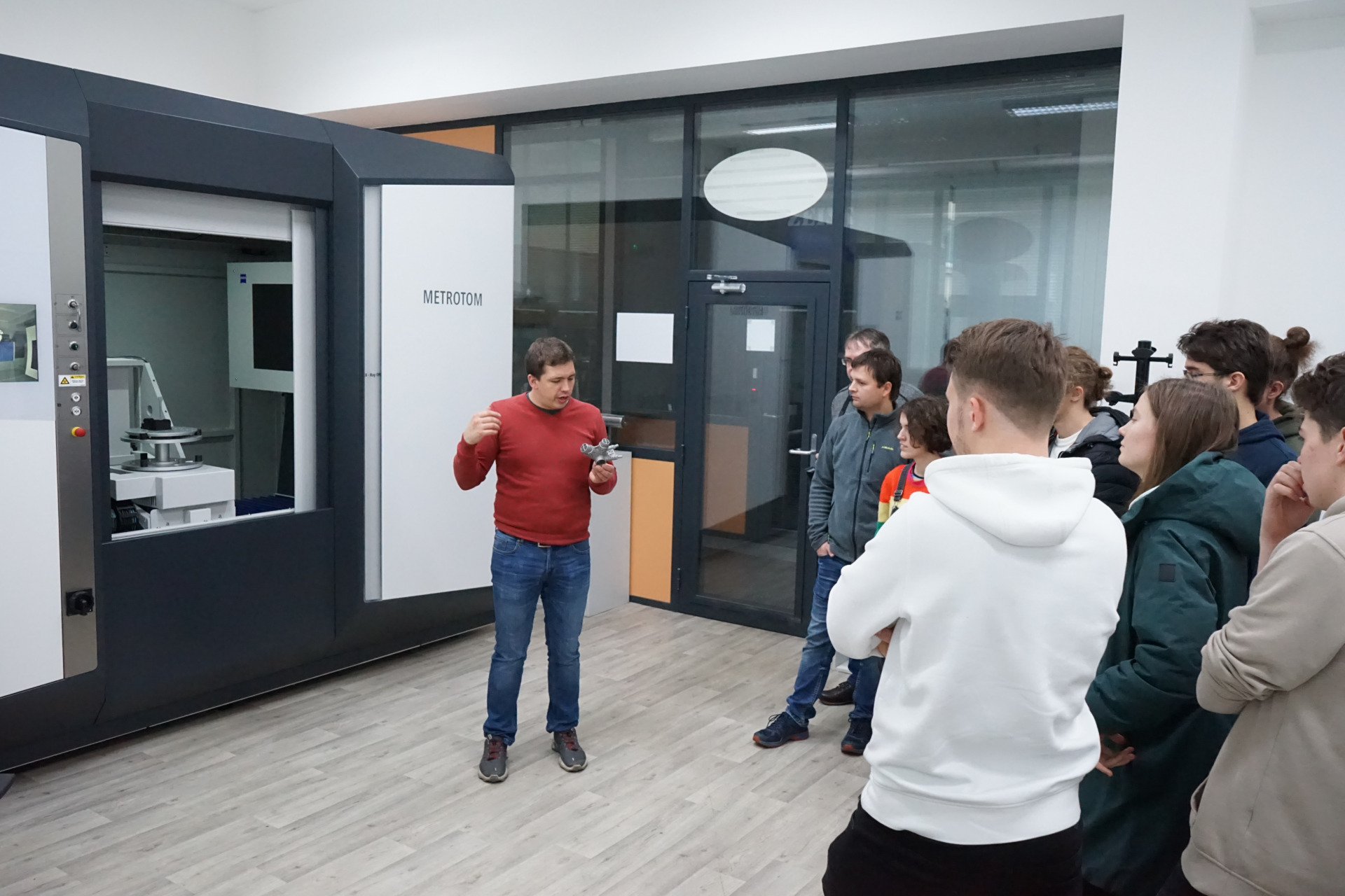 Cestu do Prahy jsme spojili s několika exkurzemi. Nejprve na ČVUT na Fakultu strojní, kde jsme se seznámili s možnostmi výroby pomocí aditivních technologií, především s 3D tiskem kovových součástí metodou SLS – spékáním jemného kovového prášku laserem. Viděli jsme nejrůznější výrobky (například brzdové třmeny ze speciální slitiny, které se zde tisknou pro nové české letouny L-39NG) a poté i vlastní 3D tiskárnu, seznámili jsme se s docela náročnou přípravou k tisku – je nutno pracovat v ochranných oblecích a tiskne se v dusíkové atmosféře, aby se zabránilo vznícení a výbuchu kovového prášku. Na závěr jsme navštívili pracoviště počítačové tomografie, kde se hotové výtisky kontrolují, zda mají správné rozměry a nemají nějaké skryté vnitřní vady.