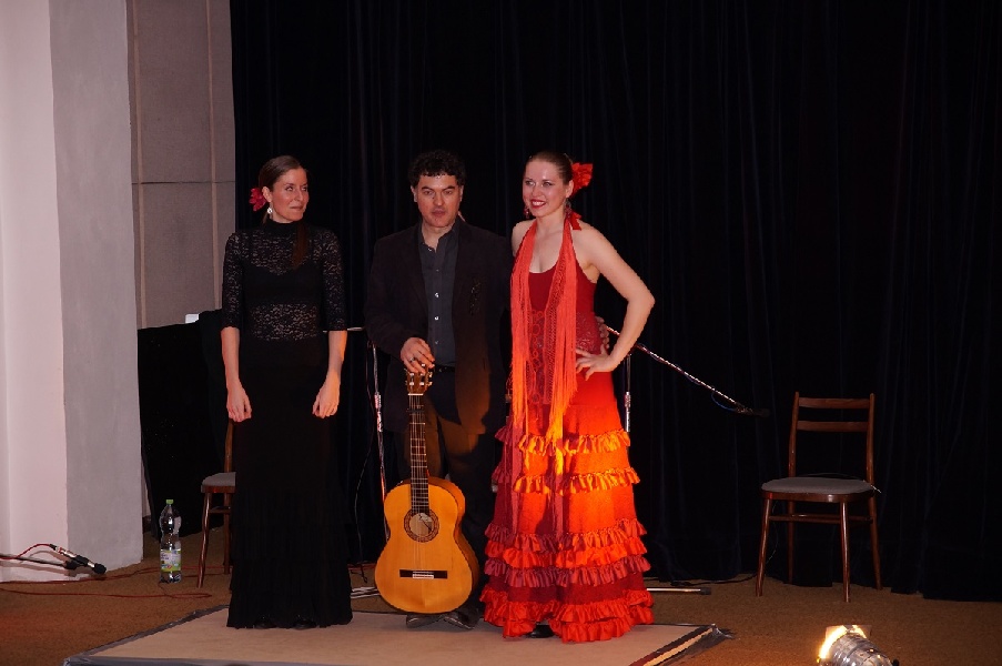 Poslední dubnový týden proběhla na našem gymnáziu, ale také v Déčku a Městské knihovně v Náchodě série kulturních akcí spojených se Španělskem a Latinskou Amerikou. Inspirací pro tyto dny bylo především přiblížení španělštiny i těm, kteří tento jazyk nestudují, zdůraznění jeho významu v současném světě a zapojení našich studentů do nejrůznějších aktivit. Španělské dny začaly v pátek 24. dubna vernisáží výstavy fotografií našich studentů a absolventů z jejich cest po Španělsku a Latinské Americe. Na vernisáži jsme servírovali kompletní španělské menu, od prvního chodu až po zákusek a mimo jiné se podávalo španělské červené víno Rioja a výtečná kolumbijská káva. V sobotu pokračoval program představením hudebního uskupení Trio flamenco. Dech beroucí tanec, zpěv a hra na kytaru rozezněly aulu naší školy. V neděli proběhla v Déčku zajímavá přednáška o Patagonii a v pondělí k nám zavítala velmi vzácná návštěva ze Španělského velvyslanectví. Pan Pablo Rupérez Pascualena, kulturní rada si prohlédl naši školu, výstavu v knihovně a následně uvedl film Sněhurka. Ocenil vyvážený program Španělských dnů a také počet studentů, kteří španělštinu na našem gymnáziu studují. Ve svém úvodu zmínil význam španělštiny a španělské kultury v současném světě a přislíbil podporu Španělským dnům i do dalších ročníků. Úterý bylo ve znamení divadelního představení studentů septimy. Studenti nazkoušeli představení inspirované učebnicí Aventura, kterou znají všichni naši španělštináři. Představení mělo velký úspěch mezi jejich vrstevníky a je nutno ocenit velké úsilí studentů, neboť zahrát divadelní představení celé v cizím jazyce, není skutečně snadné. V ten samý den dorazily do Náchoda dvě španělské dobrovolnice, které v letošním roce pracují v Brně a Kroměříži a večer ve svých prezentacích představily svoji práci a diskutovaly o životě v České republice. Velmi se jim líbí naše blízkost k přírodě, kterou Španělé příliš neznají a také vyzdvihly váhu přátelství, která zde nalezly. Druhý den besedovaly o těchto tématech s našimi studenty a ve večerních hodinách byl program Španělských dnů zakončen projekcí filmu Dotek motýla. Věříme, že program nabídl zábavu pro širokou veřejnost, představil práci našich studentů a zároveň jim ukázal, že studium jazyka není jen učení se gramatiky a slovíček, ale je to komplexní soubor kulturních a jazykových znalostí, které rozhodně nejsou nudné. Děkujeme tímto všem partnerům, protože právě i díky nim se podařila dobrá věc a v rámci celého programu se vybrala částka 6652,- Kč, která bude použita na adopci dítěte na dálku v Bolívii a podporu nadačního fondu Inka v Peru. Studenti našeho gymnázia tak budou v kontaktu s žáčkem z této rozvojové země a z peněz určených na adopci budou hrazeny jeho učební pomůcky a další výdaje, které ve škole bude potřebovat.