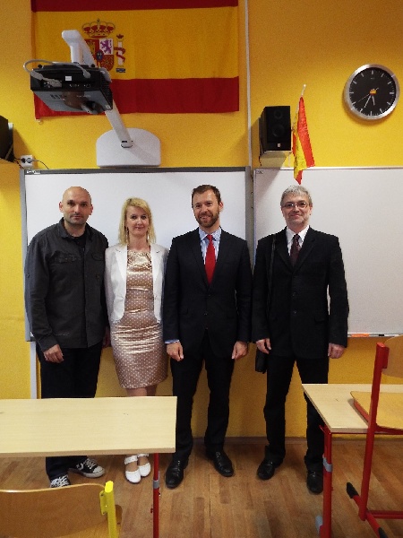 Poslední dubnový týden proběhla na našem gymnáziu, ale také v Déčku a Městské knihovně v Náchodě série kulturních akcí spojených se Španělskem a Latinskou Amerikou. Inspirací pro tyto dny bylo především přiblížení španělštiny i těm, kteří tento jazyk nestudují, zdůraznění jeho významu v současném světě a zapojení našich studentů do nejrůznějších aktivit. Španělské dny začaly v pátek 24. dubna vernisáží výstavy fotografií našich studentů a absolventů z jejich cest po Španělsku a Latinské Americe. Na vernisáži jsme servírovali kompletní španělské menu, od prvního chodu až po zákusek a mimo jiné se podávalo španělské červené víno Rioja a výtečná kolumbijská káva. V sobotu pokračoval program představením hudebního uskupení Trio flamenco. Dech beroucí tanec, zpěv a hra na kytaru rozezněly aulu naší školy. V neděli proběhla v Déčku zajímavá přednáška o Patagonii a v pondělí k nám zavítala velmi vzácná návštěva ze Španělského velvyslanectví. Pan Pablo Rupérez Pascualena, kulturní rada si prohlédl naši školu, výstavu v knihovně a následně uvedl film Sněhurka. Ocenil vyvážený program Španělských dnů a také počet studentů, kteří španělštinu na našem gymnáziu studují. Ve svém úvodu zmínil význam španělštiny a španělské kultury v současném světě a přislíbil podporu Španělským dnům i do dalších ročníků. Úterý bylo ve znamení divadelního představení studentů septimy. Studenti nazkoušeli představení inspirované učebnicí Aventura, kterou znají všichni naši španělštináři. Představení mělo velký úspěch mezi jejich vrstevníky a je nutno ocenit velké úsilí studentů, neboť zahrát divadelní představení celé v cizím jazyce, není skutečně snadné. V ten samý den dorazily do Náchoda dvě španělské dobrovolnice, které v letošním roce pracují v Brně a Kroměříži a večer ve svých prezentacích představily svoji práci a diskutovaly o životě v České republice. Velmi se jim líbí naše blízkost k přírodě, kterou Španělé příliš neznají a také vyzdvihly váhu přátelství, která zde nalezly. Druhý den besedovaly o těchto tématech s našimi studenty a ve večerních hodinách byl program Španělských dnů zakončen projekcí filmu Dotek motýla. Věříme, že program nabídl zábavu pro širokou veřejnost, představil práci našich studentů a zároveň jim ukázal, že studium jazyka není jen učení se gramatiky a slovíček, ale je to komplexní soubor kulturních a jazykových znalostí, které rozhodně nejsou nudné. Děkujeme tímto všem partnerům, protože právě i díky nim se podařila dobrá věc a v rámci celého programu se vybrala částka 6652,- Kč, která bude použita na adopci dítěte na dálku v Bolívii a podporu nadačního fondu Inka v Peru. Studenti našeho gymnázia tak budou v kontaktu s žáčkem z této rozvojové země a z peněz určených na adopci budou hrazeny jeho učební pomůcky a další výdaje, které ve škole bude potřebovat.