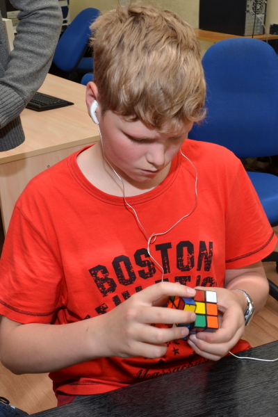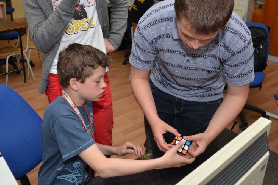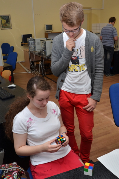V pátek 12. 6. 2015 uspořádali studenti Štěpán Škoda a Matěj Grohmann pro své spolužáky turnaj ve skládání Rubikovy kostky. K vidění byly, kromě klasické kostky 3x3x3, i různé její varianty (od 2x2x2 až po 7x7x7, jehlan…). Disciplíny byly také různé – od klasického skládání na čas přes skládání jednou rukou až po skládání poslepu… Turnaj se vydařil, tak doufejme, že nezůstane jen u prvního ročníku.